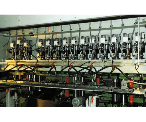 Electromechanical swing clamps mounted on a step press.