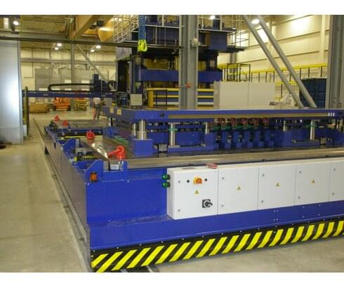 The die changing cart RWS is used for the transport and the change of pressing and punching dies as well as injection and casting moulds up to a weight of 100 t.