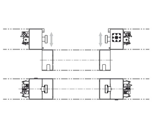 カップリングの2つの部分を位置合わせ(グリップレール挿入時)する際、ガイドにより事前センタリングされます。クランプ時、アクティブ部の位置決めピンがパッシブ部のボア穴に挿入され固定されます。このセンタリング方式により、高い再現性が得られます。クランプ力はタイロッドにより構築され、セルフロック方式で保持されます。本体に組み込まれたコンパクトな位置モニタリングシステムはバスシステムへの適応が容易で、正確な位置決めとクランプを保証します。