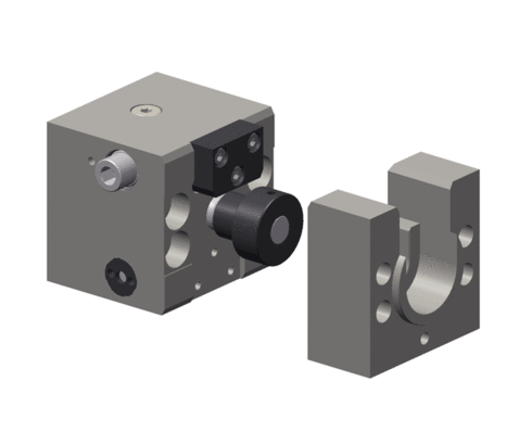 従来のシステムとは異なり、新しいカップリングの設計では、位置決め、 クランプ力生成、位置モニターのすべてのコンポーネントが、プレスに設置されたカップリングのアクティブ部分に統合されています。グリップレールカップリングのパッシブ部分には可動部品がありません。カップリングの重量を低減するため、アクティブ部分とパッシブ部分のハウジングは、硬質コーティングを施した高強度アルミニウム製です。