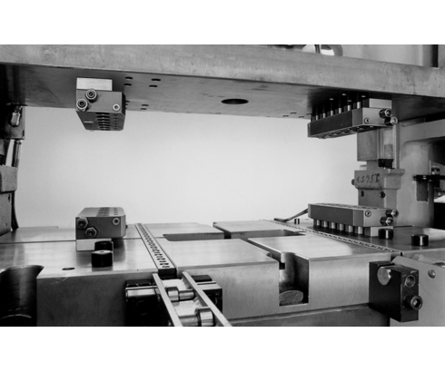 クランプバー 2.2095 をプレスベッドとラムに設置。金型交換コンソールとサイドガイドローラーを使用して、金型の容易な交換作業が可能です。