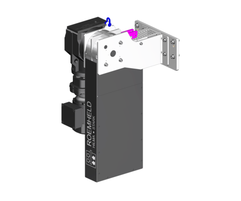 The push chain direct system is installed at the back of the machine table. The die is coupled to the push chain using a die adapter. The push chain direct system allows the user to automatically retract, position, and extend the die at the push of a button on a remote control. An absolute encoder can be used to integrate sensors (for millimetre-precise die positioning) and possible stops into the control system.
