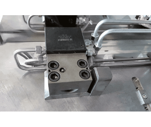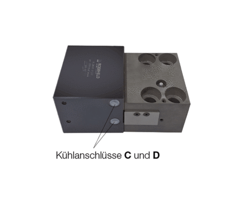 右側に油圧ポートA + Bを備えたウェッジクランプと、左側に追加の<;br />; 冷却回路C + Dを備えたもの。