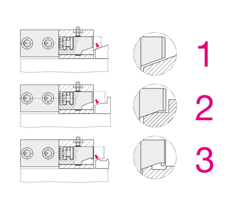 形状適合安全ステップと位置モニター機能 <;/strong>; <;/p>; <;p>;この特許取得済みの設計には、金型/クランプエッジにあるアダプターと同じ形状の突起部、形状適合安全ステップがクランプボルトに備わっています。圧力低下(機械故障や停止時)が発生した場合、上型/金型は安全ステップに接触し、形状適合により安全に保持されます。クランプボルトはクランプ解除位置に戻ることができず、上型/金型は安全に保持されます。